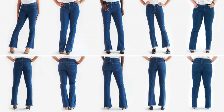 Flared jeans are definitely the way to go. A flared pair of jeans offers a wide opening on the bottom and a tight fit on the thighs, making them the ideal everyday pants.
