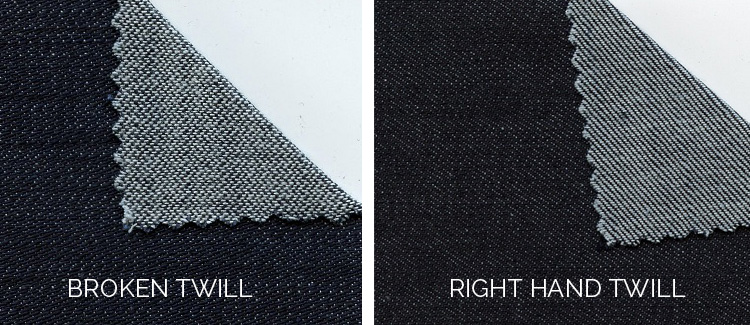 Better if you noted what manufacturer uses what weave, For example: Levis uses a right hand twill at 15.5 oz. in it classic 501 or 505 jeans. American Clothing Company uses zig-zag or some other twill for theirs. The differences would also be nice, e.g.: one is stiffer than the other, the z-z twill drapes better and feels softer because why… Duluth uses the heavy 15.5 weight in a classoce RH or LH weave and so on…Just sayin’